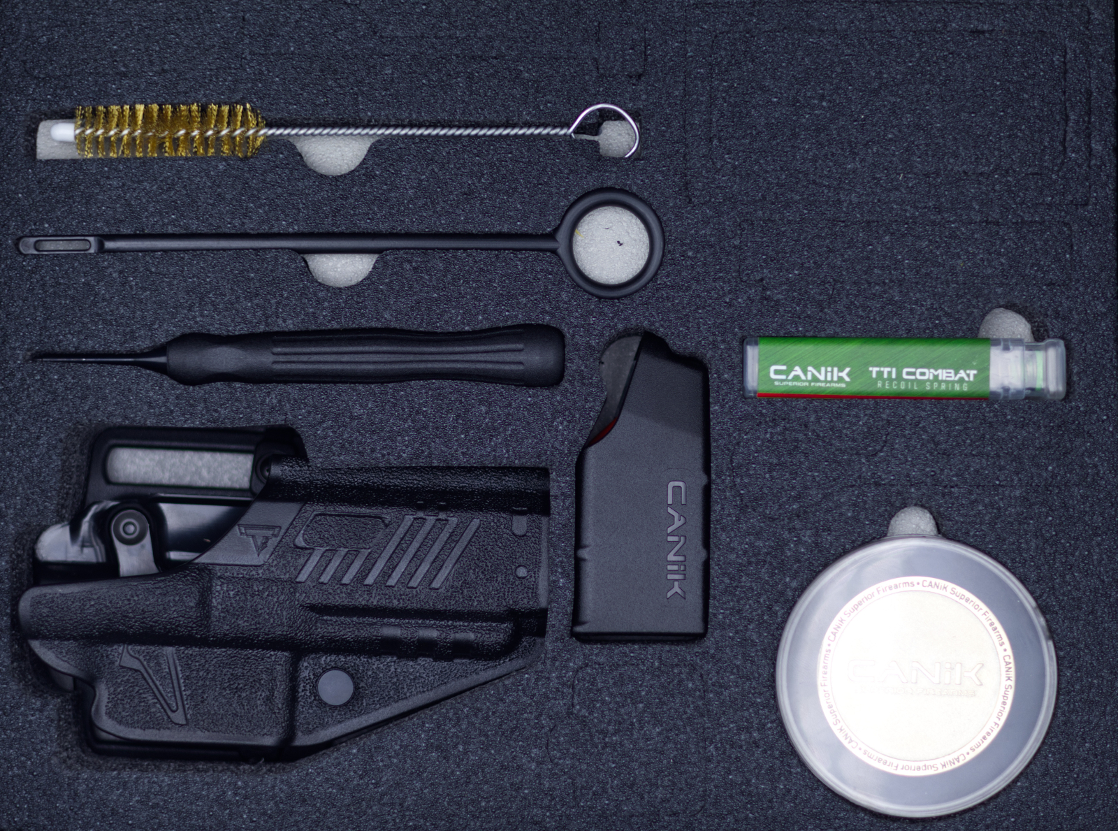 Taran Tactical Innovations și CANiK sunt mândri să colaboreze pentru a vă oferi CANiK TTI Combat. Construit pe un șasiu polimeric complet nou, proiectat de Taran Butler, TTI Combat aduce un pachet de performanță unic în gama CANiK. Acest design elegant este construit de cei mai buni, pentru cei mai buni și include toate caracteristicile de care un campion mondial precum Taran Butler are nevoie pentru a avea succes. Atât intern, cât și extern, TTI Combat oferă o texturare a mânerului unic și agresiv, o țeavă cu orificii și caneluri, primul compensator CANiK, un trăgaci cu față plată și unghiular de 90 de grade, tăietură diamantată, plăcuțe de bază pentru încărcător TTI +3, un sistem de eliberare a glisierei nou conceput, o tăietură optică care permite chiar și o poziționare cu profil redus a liniei de optice MECANIK, precum și a Trijicon SRO și a multor altele, un toc personalizat și o husă rigidă de călătorie. Pentru a completa acest pachet de colecție, am inclus o monedă frumoasă de colaborare pentru a comemora parteneriatul nostru de lungă durată. Acest parteneriat a creat o armă de foc cu adevărat superioară!