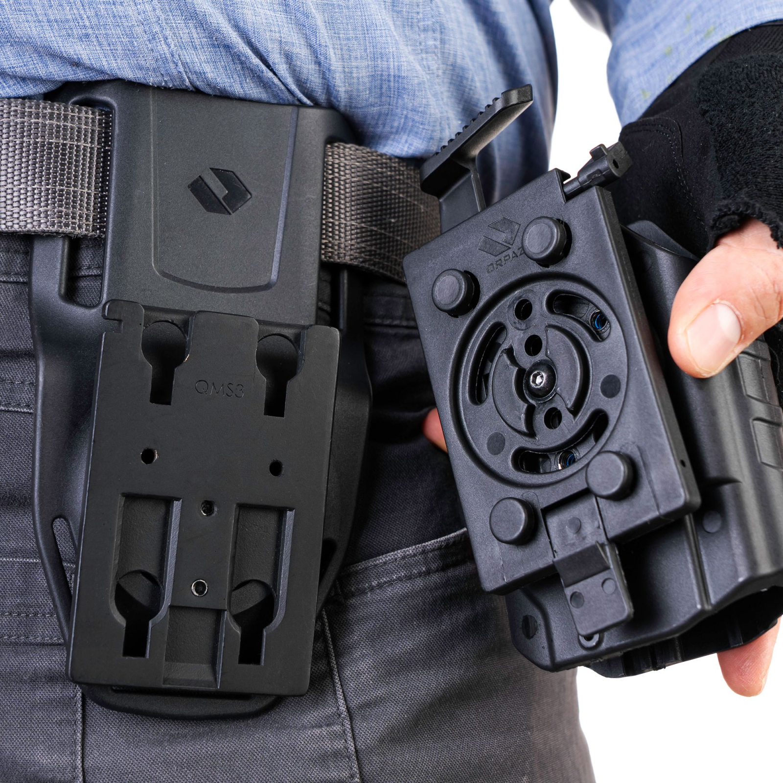 Inserția QMS se montează perfect pe orice toc Orpaz, asigurând compatibilitate universală și posibilitatea de a schimba rapid tocurile între diferite metode de purtare și platforme tactice.