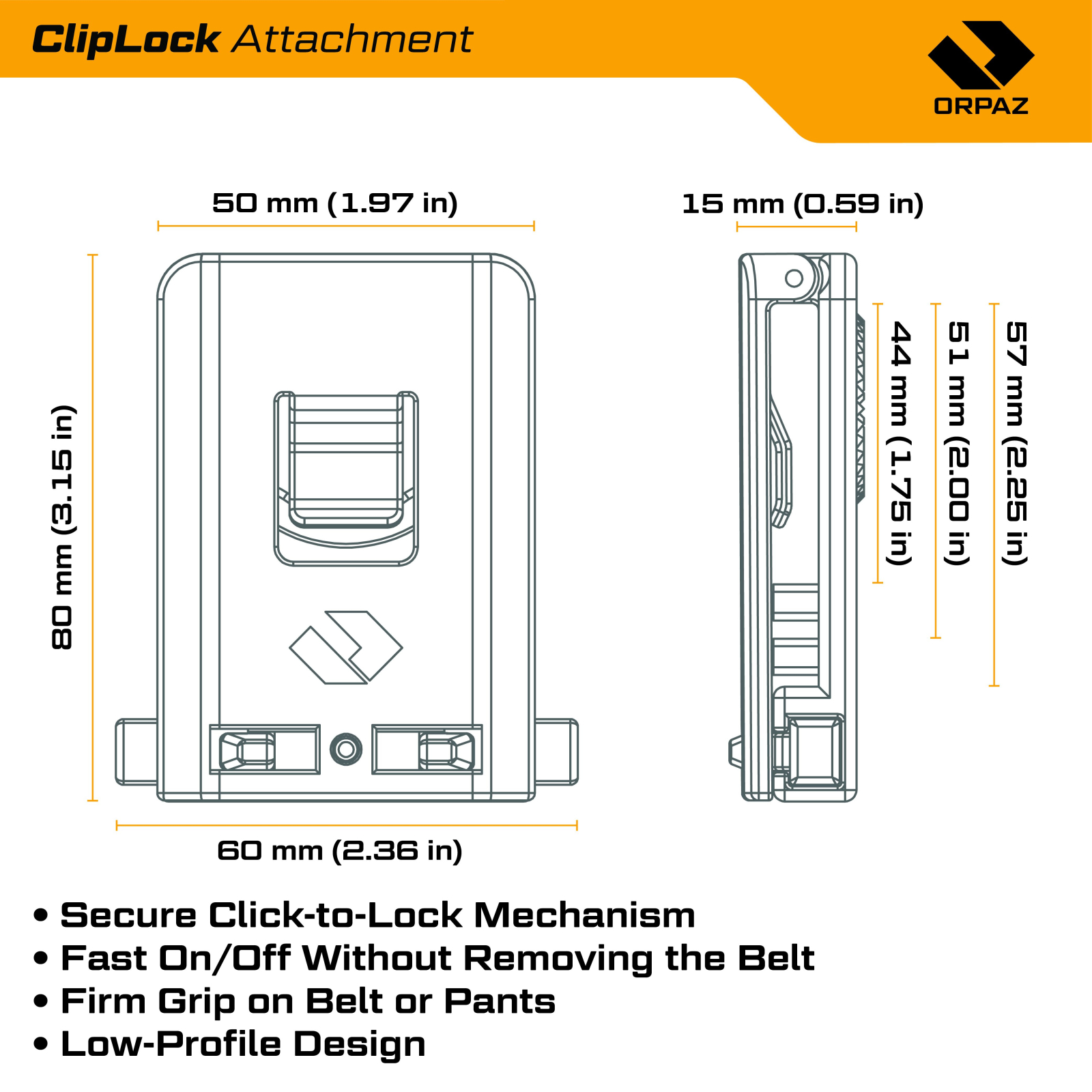 Permite mutarea instantanee a tocului între diferite accesorii Orpaz, fără utilizarea uneltelor. Adaptare rapidă la misiuni sau scenarii diferite prin repoziționarea facilă a echipamentului.